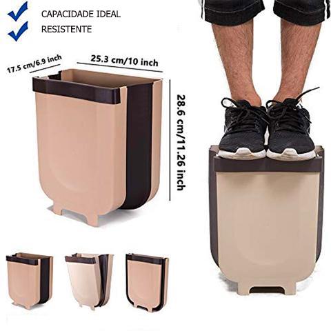 Fabricada em polipropileno grosso de qualidade premium que é duradouro e não tóxico. A barra fixadora na boca da lixeira mantém preso o saco de lixo. Este modelo dobrável inovador é ideal para armários de até 2,2 cm de espessura, com capacidade de 9L, desenvolvida num formato maior para facilitar o descarte do lixo da cozinha.