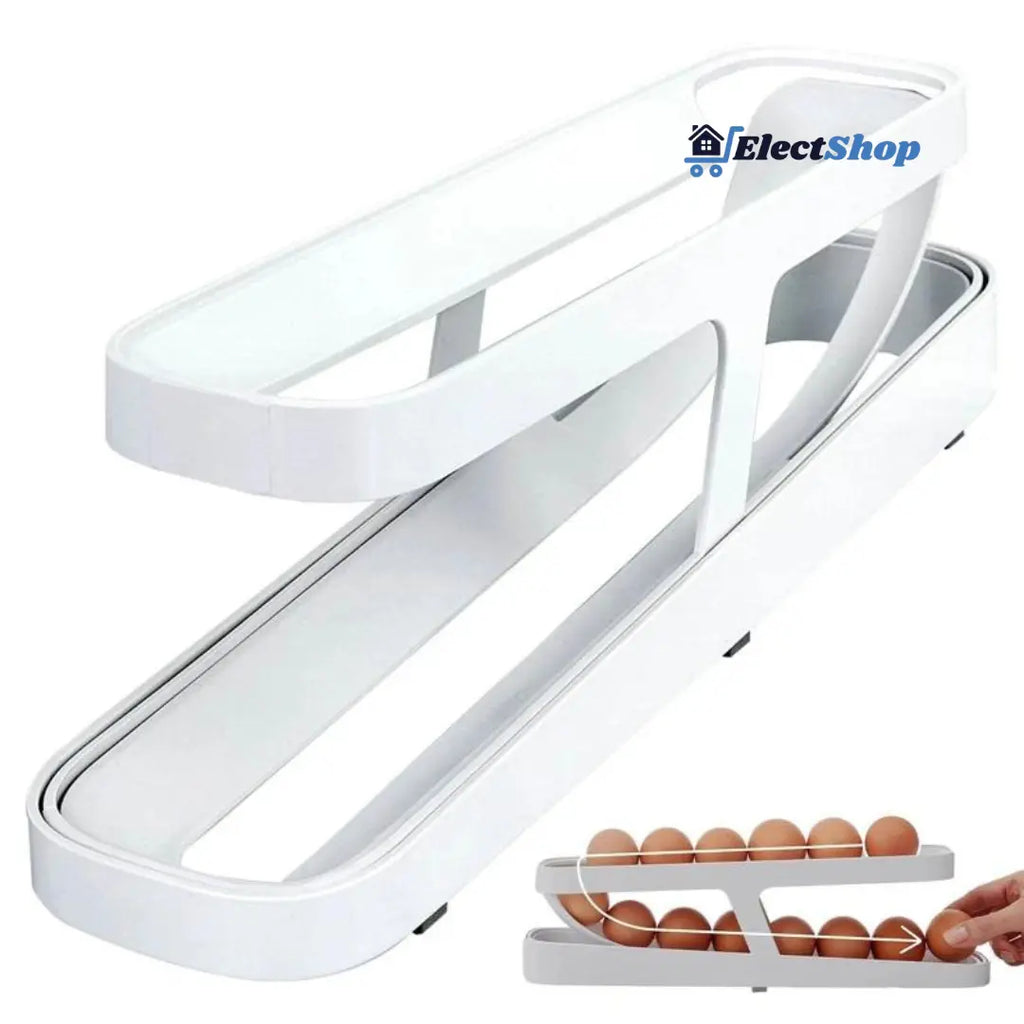 Descubra um novo padrão de organização com nosso organizador de ovos inovador, projetado para transformar a maneira como você armazena seus ovos. Com um design que utiliza a gravidade para disponibilizar um ovo por vez com um simples movimento suave, este compacto organizador é a solução perfeita para sua cozinha.